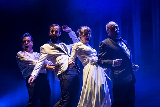 Empezaré por lo que más me gustó de la velada. Las dotes interpretativas de Sandra Fernández Agirre están fuera de toda duda. Armó sus personajes con gran acierto, incluso peleando con el guión y la dirección de Agurtzane Intxaurraga y sus desaciertos. Es una gran actriz y lo demostró en este Bodorrio de la noche del viernes en Leioa. El actor Patxi González también dio muy bien y con acierto la réplica a sus personajes, con ingenio, oficio y maestría.
