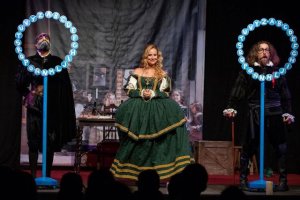 Pero vamos al teatro. En la agradable tarde y noche de Almagro, sobre el tablado del Corral de Comedias, dará comienzo la representación de “La farsa del Siglo de Oro”. El cuadro de Las Meninas ocupará el centro del escenario, testigo de una época que en lo literario y artístico alcanzará una gran relevancia dentro y fuera de España. En su momento, el propio Diego de Velázquez hará acto de presencia con su gracejo sevillano para dar los últimos retoques a su obra en presencia de la Infanta Margarita, la reina Mariana de Austria y el bufón Nicolasito Pertusato. La conversación de Velázquez con la Infanta no tiene desperdicio y da pie para destapar algunos secretos de la Corte de Felipe IV.