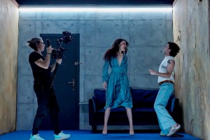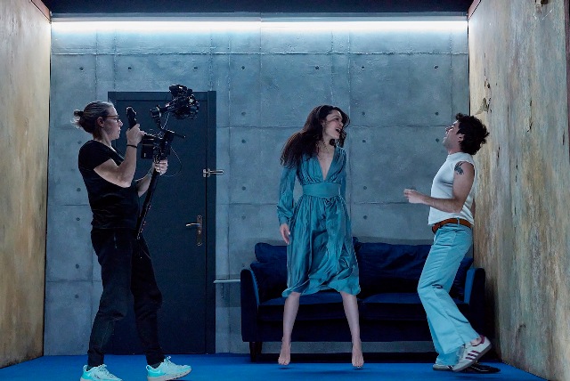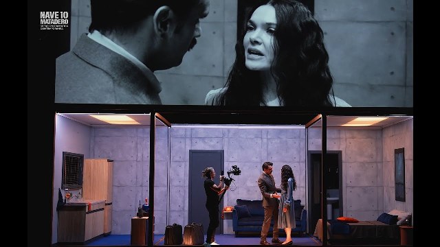 La escenografía, con la cámara en directo manejada por Alicia Aguirre, se convierte en el cuarto intérprete de este drama. La proyección sobre una gran pantalla, en la parte delantera superior del escenario, de todo cuanto se desarrolla en escena, hace de la función teatral un trabajo profundo de introspección de los personajes. La enorme pantalla ofrece en blanco y negro primeros planos desde ángulos a veces invisibles para el espectador en la sala; también se intercalan frases y reflexiones, y en muchas ocasiones la reproducción grabada –no en directo- explica las escenas como una proyección de los pensamientos y sentimientos de los protagonistas o, también, permiten la visión simultánea de dos acciones en lugares diferentes. El ritmo de la interpretación y la proyección, subrayado por la música apropiada y oportuna de Ale Acosta, pareciera un bello baile o una danza que nos conduce, sin soltarnos, por los vaivenes emocionales del drama representado.