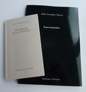 Pues bien, la curiosidad ha querido echar un vistazo para ver por dónde andan los libros publicados en solitario, los dos de poesía “Testimonio de la desnudez” (Colección Maravillas Concretas, 11.-Fundación Jorge Guillén-Diputación de Valladolid,2015), “Lucernarios” (Ediciones Vitruvio.-Colección Baños del Carmen,599.-Madrid 2016) y el de relatos para las fotografías reunidas por Alfredo García, “Miradas del ayer.-La Pola de Gordón”(Editado por la Junta Vecinal de La Pola de Gordón,2016). Y tomo nota de dónde pueden encontrarse y leerse.