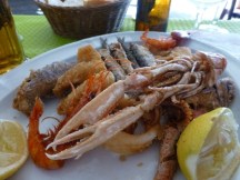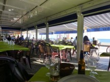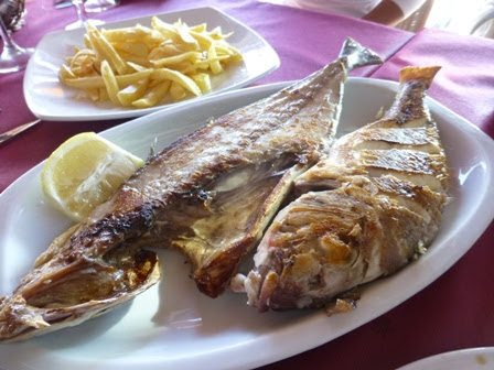 En Villaricos la suerte nos condujo hasta el Chiringuito La Balsica, emplazado La Balsica, uno de los dos puertos con que cuenta el pueblo. Después de meternos en faena con unas tortitas de calamares a modo de entrante, llegaron unas hermosas y muy sabrosas gambas para dar paso luego a los platos de pescado, en este caso de breca y lecha bien hechos, jugosos con toda la potencia del mar en sus carnes. Un acierto.