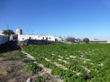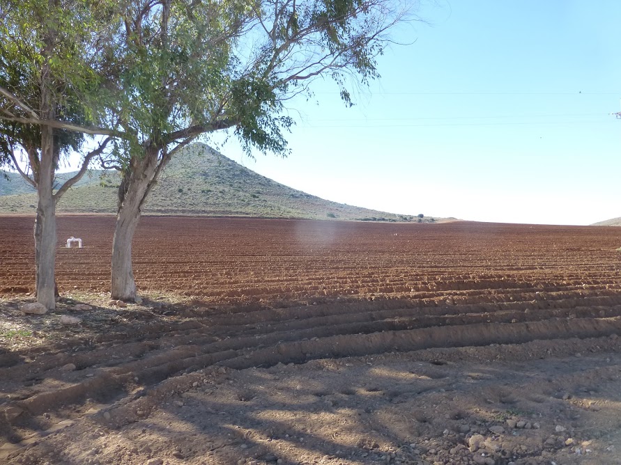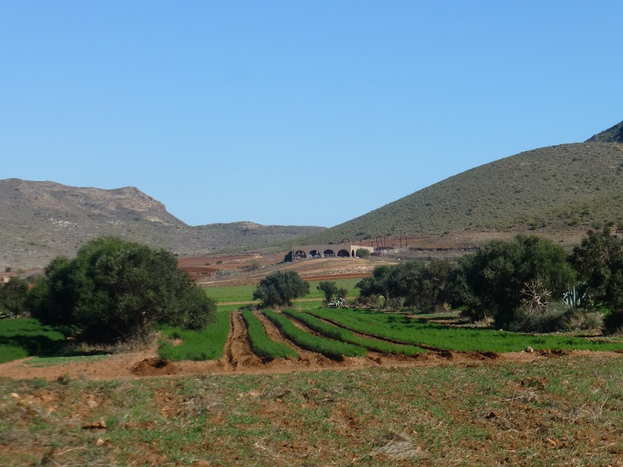 El paraje aparece en casi toda su extensión cultivado y verde; se trata de una gran finca en medio de la cual se conservan las ruinas del cortijo desde el que se alcanza a ver las explotaciones mineras de Rodalquilar.