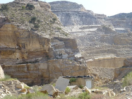 Continuando el descenso alcanzamos la localidad de Macael y pudimos acceder a la explotación de sus impresionantes canteras de mármol. Más abajo de las canteras, la empresa Cosentino ocupa una gran extensión con las naves industriales de sus instalaciones para la elaboración y preparación de los afamados mármoles.