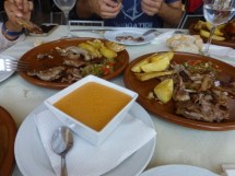 El mayor inconveniente, sin embargo, es que casi todo está cerrado, incluido el pequeño supermercado del pueblo. Pero, por suerte, encontramos abierto el Chiringuito Los Tarahis. En un mediodía de agradable sol y temperatura fresca a la sombra, accedimos a la cocina y la carta de Los Tarahis, comandada por Leire, sin podernos resistir a las espectaculares croquetas de chipirones, los pimientos rellenos del piquillo, las ortiguillas o la interesante fritura de pescado. Atendido a la mesa por Nono, joven afable y jovial, hermano de la cocinera, la comida y la sobremesa transcurrieron de manera amena y relajada, siendo invitados –además- de manera generosa a unos más que abundantes postres, café y un bien escogido vino blanco verdejo.